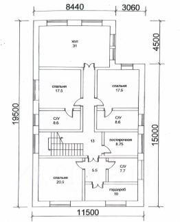 Второй этаж: мастер-спальня с гардеробной и санузлом, две спальни с санузлами, гостиная, прачечная