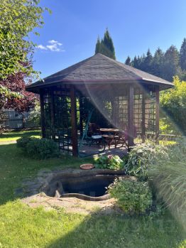 Закрытая Мангальница - пенобетонные блоки с заведённой водой и туалетной комнатой. 50 кв.м. Полностью готова. Беседка деревянная с бетонным полом площадью 16 кв.м.