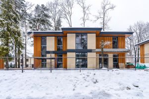 В архитектурном проекте данного дома продумано все до мельчайшей детали. Применение планкен из лиственницы и светлого облицовочного камня в экстерьере напоминает о природном анклаве, в котором расположен дом. Находясь в данном доме, ощущается особенная умиротворенность. Дом подходит для круглогодичного проживания всей семьи.