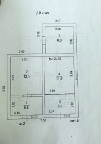 Первый дом площадью 91,2 кв.м., имеет два этажа, состоит из трех изолированных комнат, большой кухни с обеденной зоной, санузлом с окном и коридора. Полностью меблирован. Есть подвал. В доме установлен комбинированный котел под электричество и твердое топливо. Стены из кирпича. Ленточный фундамент. Имеет статус жилой.