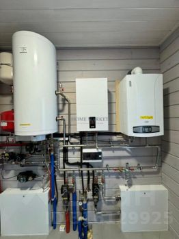 Коммуникации: электричество - 10 кВт (трехфазное), водоснабжение: скважина 117,5м + кессон, канализация-станция биоочистки, отопление - газовый котел (основное) и электрический котел (резервный).