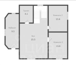 На втором этаже расположенны три спальных комнаты, сан.узел и большой корридор, который можно использовать в качестве гостинной. В доме отсутствуют несущие перегородки, в следствии чего планировку возможно изменить исходя из собственных предпочтений.
