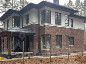 Фундамент, конструктив и межэтажные перекрытия выполнены из монолитного железобетона, который обладает наилучшей несущей способностью из всех материалов, используемых в строительстве. Это обеспечивает дому максимальную надежность и долговечность.