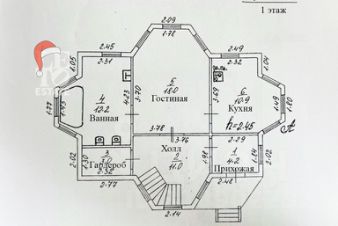 Первый этаж - прихожая, холл, гардеробная, гостиная, кухня, с/у с ванной.
