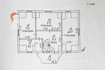 Третий этаж - три спальни, с/у.