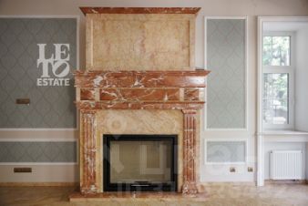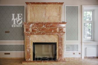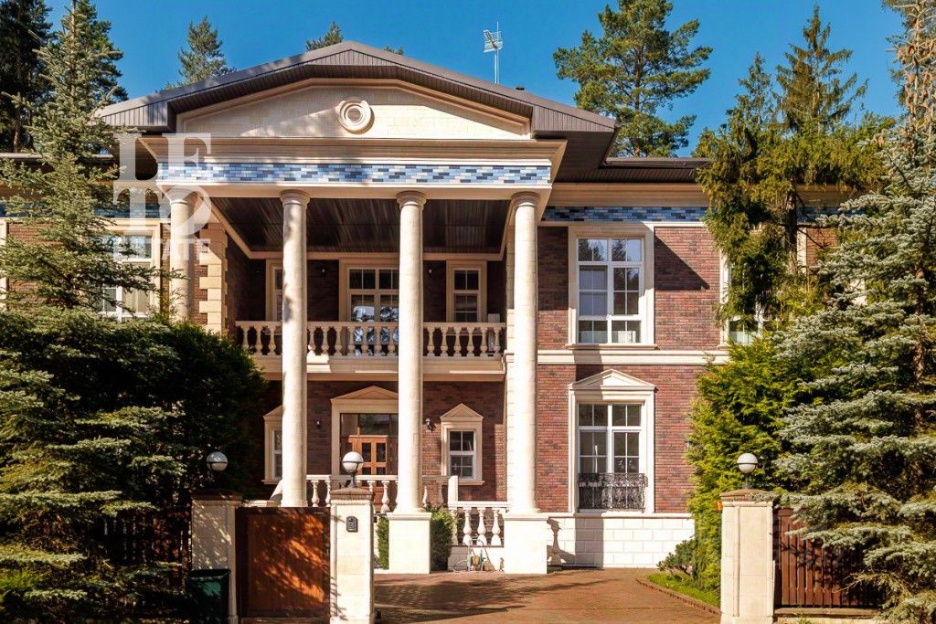 Построен дом из кирпича, фасад отделан немецким клинкерным кирпичом + шамот, медная фальцевая кровля. Отделка дома выполнена по индивидуальному дизайнерскому проекту. Большие понорамные окна, светлая отделка дополняют дом светом. Для внутренней отделки использовались дорогостоящие материалы: паркет (дуб), мрамор (Италия), двери (массив дерева). Лестница в доме сделана из мрамора с перилами ручной работы с элементами ковки. Итальянская кухня выполнена из массива, есть вся необходимая встроенная техника: Smeg, сантехника Vileroy&Bosh.