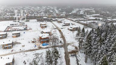 Участок, на котором расположен дом, правильной прямоугольной формы, общей площадью 6 сот. Объект находится в центре коттеджного поселка достаточно близко к лесу и прогулочной зоне. Вода и канализация заведены в дом. Газ по границе участка.