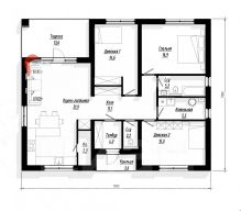 Отдельного акцента заслуживает планировка дома. Дом одноэтажный. Все пространство эргономично спланировано. Есть большая кухня-гостиная с выходом на террасу, три спальни, отдельное помещение бойлерной.