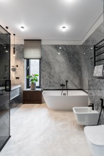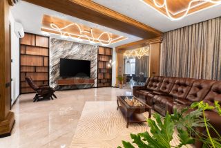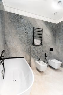 3 полноценные мастер-спальни: Три спальни со своими ванными и гардеробными (одна на первом этаже, две на втором).