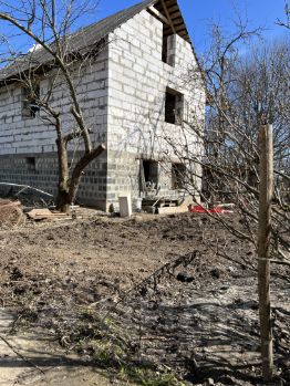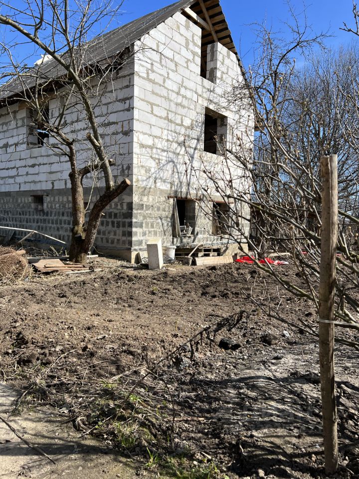 Дом бы построен для себя, все работы были сделаны вручную. Первый этаж выложен фундаментными блоками, Второй этаж из газоблока. Есть Мансарда из дерева, лестниц нет. Три парковочных места, отсыпанные щебёнкой, одно парковочное место крытое. Есть плодовые деревья, и место для грядок или газона.