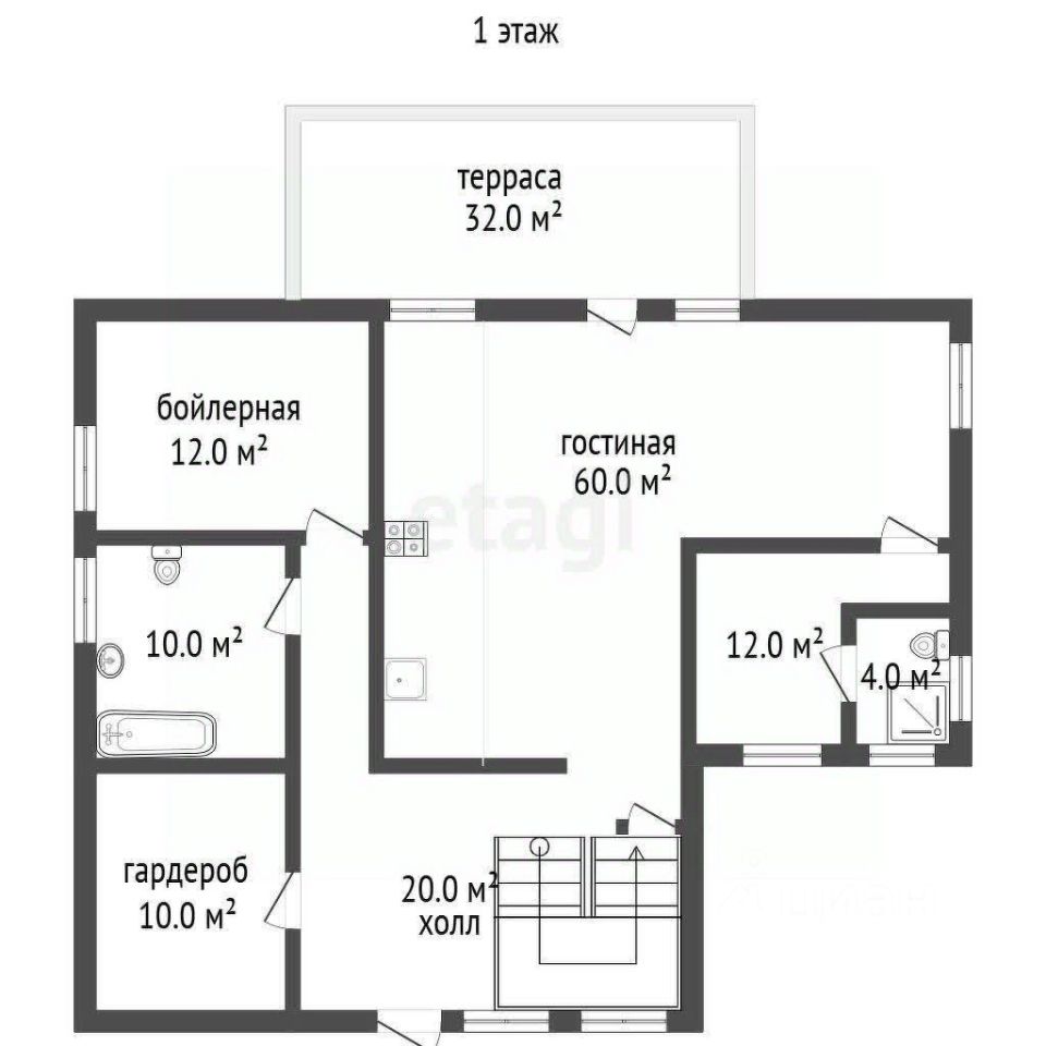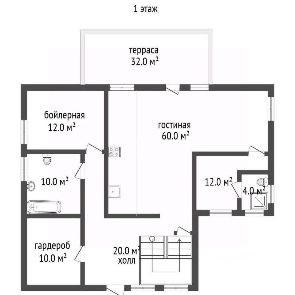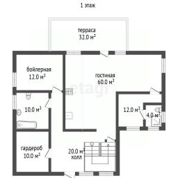 Планировка продумана для комфортной жизни: на первом этаже расположены кухня-гостиная, отдельная комната, два санузла, котельная, гардеробная и просторная прихожая с возможностью установки камина. Второй этаж занимают три комнаты, два санузла, гардеробная и две большие террасы.