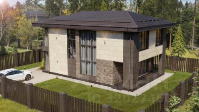 Дом выполнен в современном архитектурном стиле, объединяющем строгие геометрические формы, большие панорамные окна