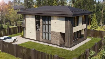 Дом выполнен в современном архитектурном стиле, объединяющем строгие геометрические формы, большие панорамные окна