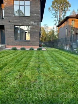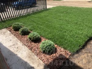 Участок правильной формы без уклона, отсыпан черноземом, растет газон.