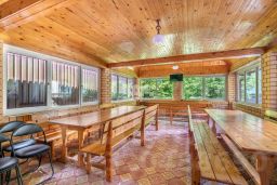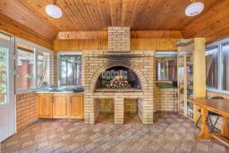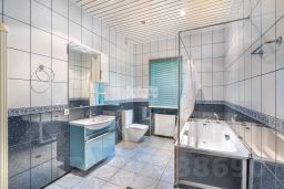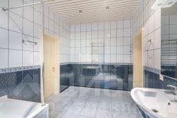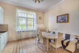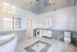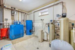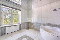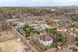 Основной дом общей площадью 564 квадратных метра, возведенный в 2006 году по эксклюзивному проекту. Основа дома - монолитный фундамент, крыша покрыта гибкой черепицей KATEPAL. Стены выполнены из кирпича толщиной 80 см. В кухонной зоне и ванных комнатах установлена система теплых полов. Панорамное остекление и потолки высотой 3,15 м наполняют дом светом и создают ощущение простора. Напольное покрытие - паркетная доска высокого качества. Лестница украшена коваными элементами. Дом полностью укомплектован мебелью и бытовой техникой. Мебель в спальнях изготовлена по индивидуальному заказу в Италии, двери выполнены из массива дуба. Мансардный этаж можно использовать для хранения вещей. В цокольном этаже расположена сауна HARVIA из лиственницы. Котельная оборудована премиальным оборудованием, включая газовый котел BUDERUS Германия и мощную систему водоочистки.