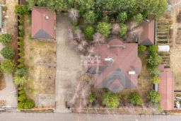 На участке также расположен двухэтажный гостевой дом площадью 180 квадратных метров с гаражом на три автомобиля. На втором этаже находятся гостиная, две спальни, кухня и санузел.