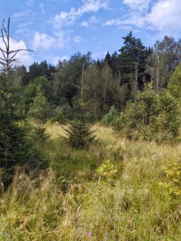 Земельный участок 15 сот, по факту 25 сот, граничит с лесом. Улица тупиковая, где исключается шум проезжающих машин. На участке произрастают молодые сосны и ели.