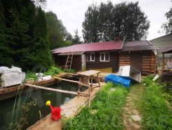 Дом стоит на третьей линии от Новосходненского шоссе, поэтому на участке тихо и не слышно дороги. Дом построен из бревна 180-200 мм, площадь дома 72,5 кв.м и 6 кв.м. болерная. В настоящее время никто не живет.