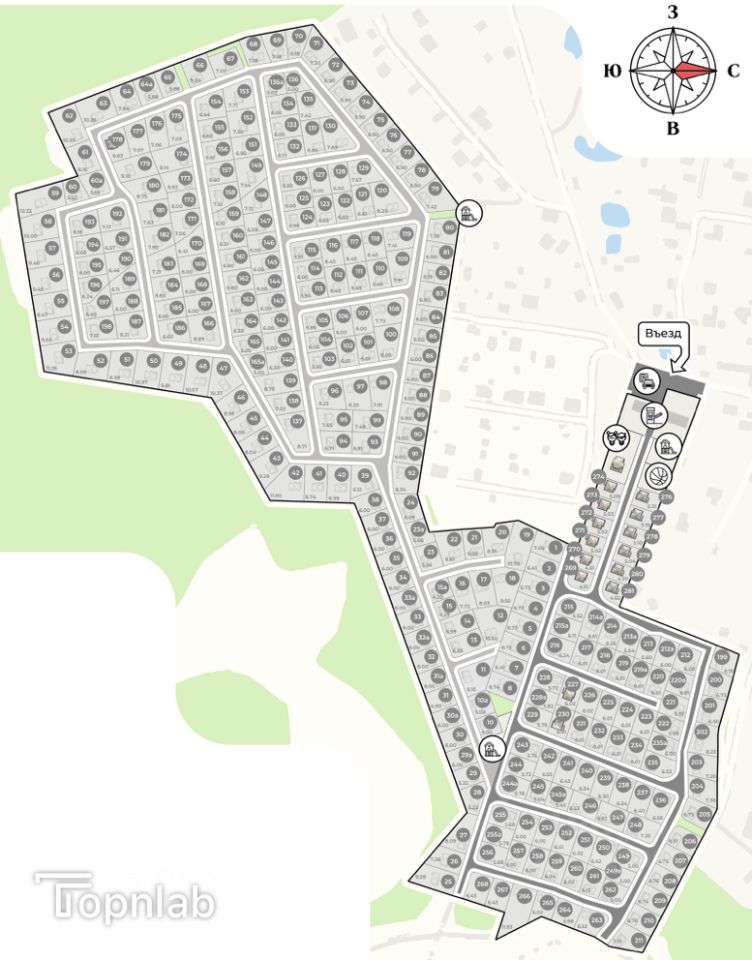 * Полный Комплект Коммуникаций: Мы заботимся о вашем комфорте! Все центральные коммуникации магистральный газ, центральное водоснабжение, городская канализация и центральное электроснабжение уже проведены до границы каждого участка. Забудьте о хлопотах!