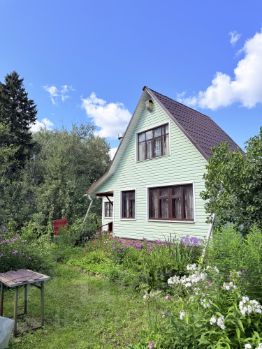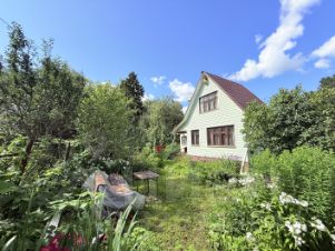 Дом: площадь дома 40 м2. Построен в 2000 году. Дом пригоден для круглогодичного проживания с внутренней отделкой, укомплектован мебелью и бытовой техникой, которая остается в доме и передается покупателю без дополнительной оплаты. Первый этаж из бруса, утеплен, отапливается. Мансардный этаж деревянный не отапливается (есть возможность утеплить и провести отопление). Перекрытия деревянные, обшит сайдингом. На полу в помещениях дома линолеум и крашенная доска, стены на террасе и в мансарде обшиты вагонкой. Кровля металлочерепица. Окна с деревянными рамами. На первом этаже одна комната, кухня и холодная веранда, на мансарде одна комната.