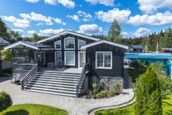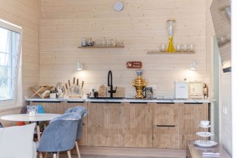 —В доме 4 жилые комнаты: просторная кухня-гостиная, 3 отдельных спальни и 2 с/у. Также отдельной гостевой комнатой может стать комната отдыха в бане.