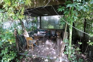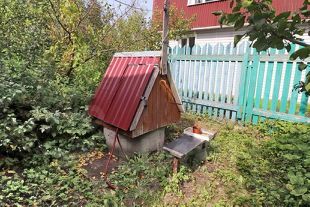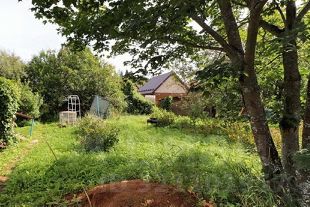 На краю участка есть небольшой садовый домик, в котором можно жить в период строительства основного дома.