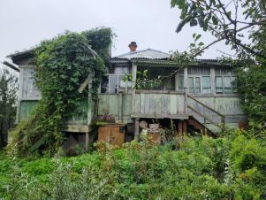 Продаваемая часть жилого дома (основное строение бревенчатое + пристройка каркасно-обшивная с утеплителем) с отдельным входом, имеет общую площадь 53,2 кв.м (без учета неотапливаемых помещений площадь 32,2 кв.м), состоит из двух жилых комнат (изолированные) площадью 12,6 и 11,1 кв.м, кухня 8,5 кв.м, две неотапливаемые веранды 14,6 и 6,4 кв.м. Заведено электричество (отдельный лицевой счет) и летний водопровод на кухню. Отопление печное. Газ по границе участка (в соседние две части дома газ подведен). Туалет на улице.