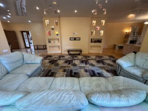 1 этаж: Просторная светлая гостиная с панорамными окнами и выходом на террасу, отдельная кухня-столовая, кабинет, совмещенный санузел, 2 прихожих комнаты, котельная.