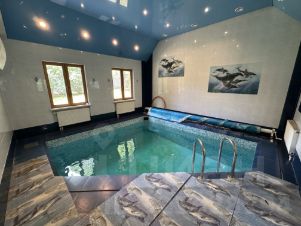 * Баня (89,2 кв.м.) с бассейном (5х6 кв.м.) с противотоком, спа-зоной, сауна с печкой на дровах.