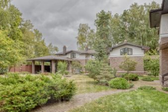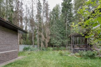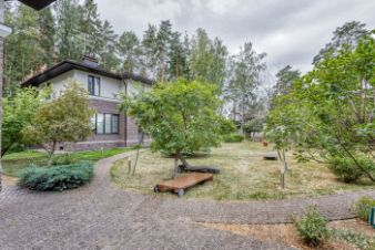 На участке в 60 соток органично вписался и красивый ландшафтный дизайн с вымощенными дорожками и плодовыми деревьями и лесная часть участка с березами и вековыми соснами с прямым выходом в лес.