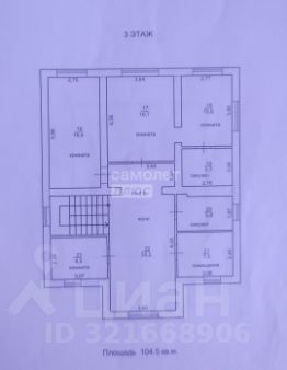 На третьем этаже холл, просторные две изолированные и одна смежная спальные комнаты, два санузла и помещение.