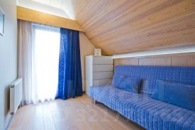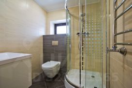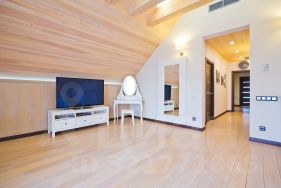 Первый этаж: холл, две большие комнаты, парная с дровяной печкой, душевая, с/у, подсобное помещение со стеллажами для хранения инвентаря и котельной имеет отдельный вход. Второй этаж: холл, три спальни, два с/у.