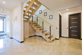 Первый этаж: холл, кухня-столовая с выходом на террасу, гостиная, кабинет, с/у, постирочная, котельная, гардеробная. Второй этаж: холл, мастер-спальня с отдельным с/у и гардеробной, три спальни, с/у.