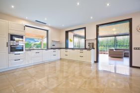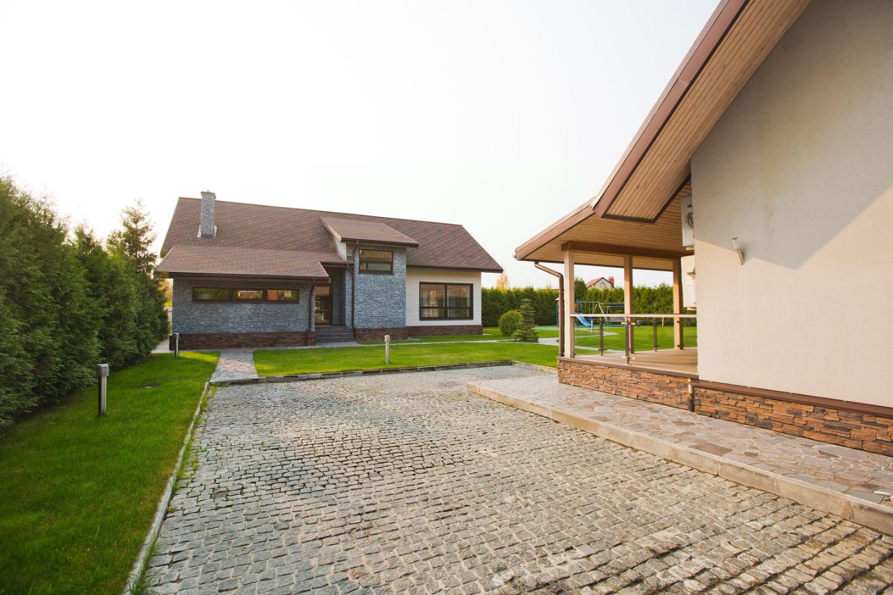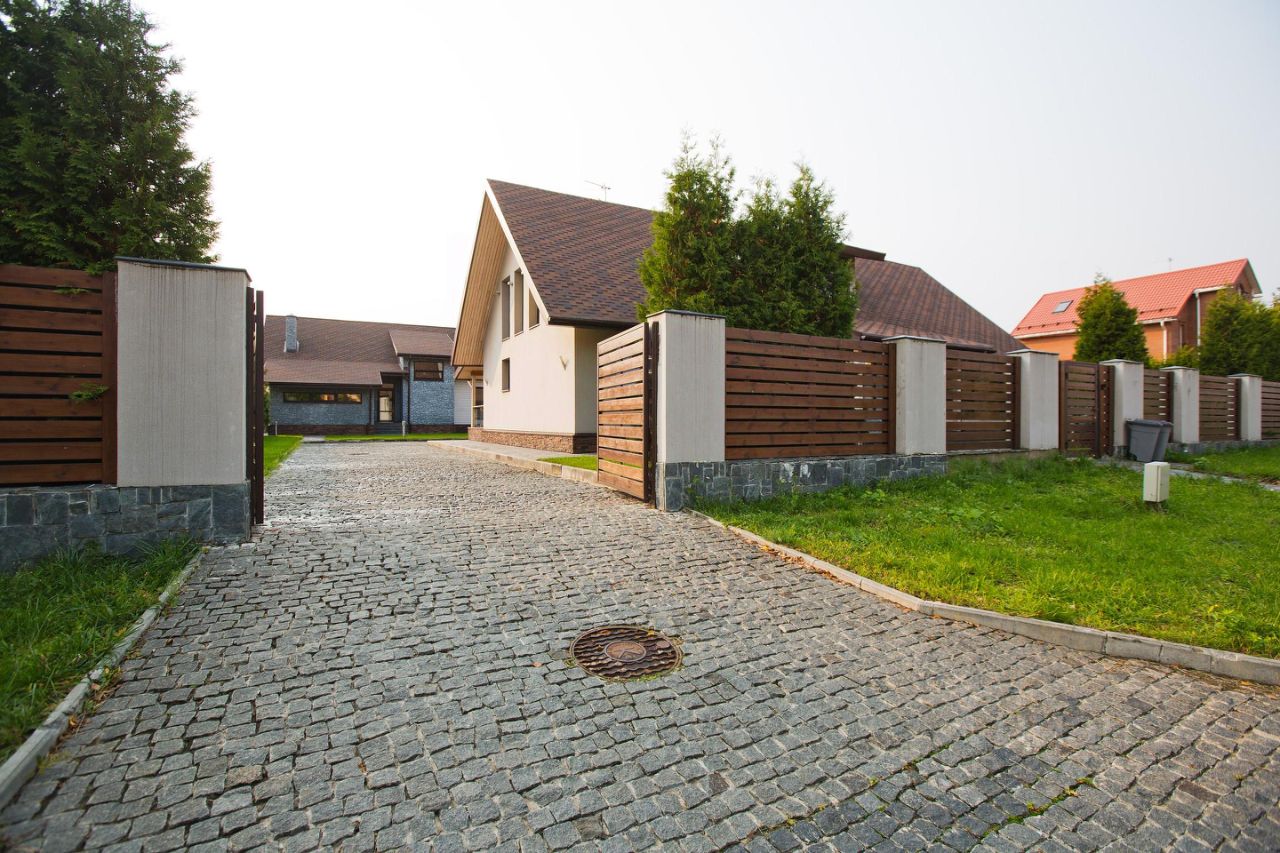 На участке установлен дренаж и система автоматического полива газона и растений, по периметру высажены туи, автоматические въездные ворота и калитка с видеодомофоном, дорожки и въездная группа вымощены гранитной плиткой.