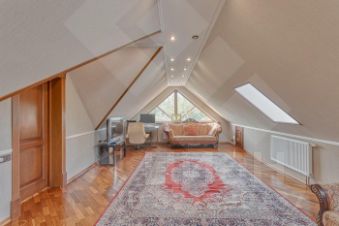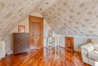 Со вторым этажом дома нас знакомит лестница из натурального дерева и далее представлены три спальни, гардеробные, выход на большую террасу в одной из спален.