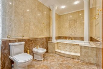 На 1 этаже расположились просторная кухня-столовая (оборудована всей необходимой техникой Miele и Kuppersbusch: холодильник, посудомоечная машина, плита, духовой шкаф, места для хранения) гостиная, просторный холл, прихожая, ванная. Вся мебель премиального испанского бренда Vicente Zaragoza. Высота потолков 2,6м. На полу паркетная доска и натуральный камень. В доме установлены кондиционеры Mitsubishi Electric. Три санузла в основном доме, два с душем и один с джакузи.