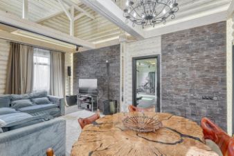 Гостевой дом _180м2 - многофункциональный. Здесь представлена огромная гостиная, спальня, личное фитнес пространство, холл, с/у с душем, комнаты свободного назначения. В доме оборудована котельная и предусмотрен выход в гараж. Современное интерьерное решение, натуральный брус сибирская сосна. Высота потолков более 6 метров. Много естественного света!