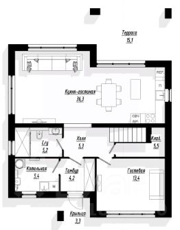 - терраса, кухня-гостиная, гардеробная, кладовая, котельная.