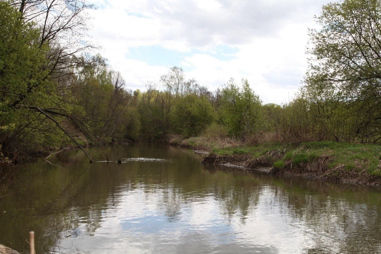 Прекрасный земельный участок с прямым выходом к живописной речке, окружённый зеленью.