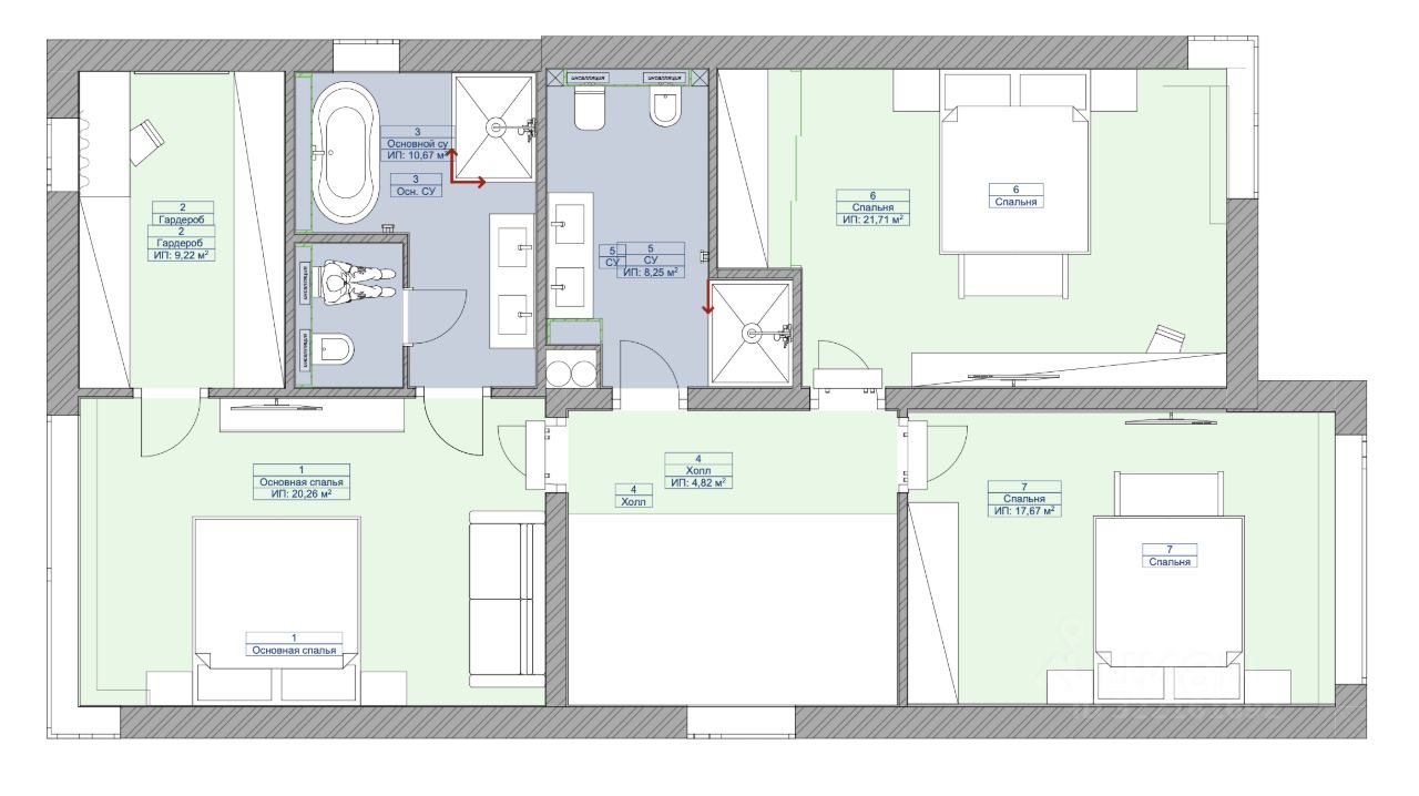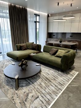 • 3 уютные спальни с панорамными окнами, текстилем и коврами на 2-ом этаже, мастер спальня с собственной гардеробной комнатой и санузлом