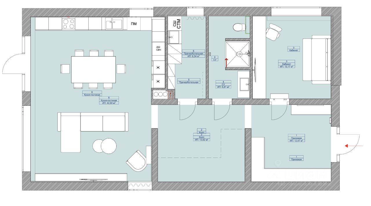 • Просторная кухня-гостиная с панорамными окнами с выходом на террасу и участок с ладшафтным дизайном