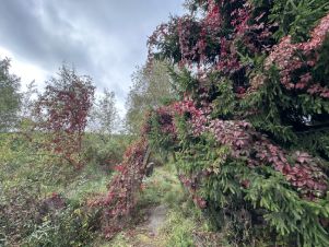 На участке расположен собственный пруд, растут яблони и крыжовник, есть огород, а со всех сторон участок огорожен забором. Особо хочется отметить, что участок - крайний, с одной стороны не граничит с соседями, а выходит на поле - что даёт ощущение простора, тишины и приватности.