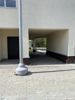 Дом из бетонных блоков, несущие конструкции монолит, крыша металлочерепица, окна двухкамерный стеклопакет. Два входа в дом. Крытая парковка на две машины. Рядом открытая парковка.