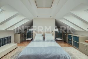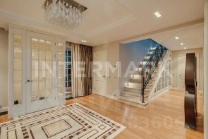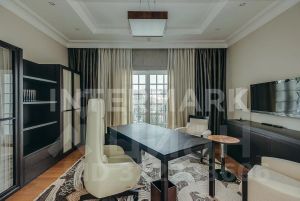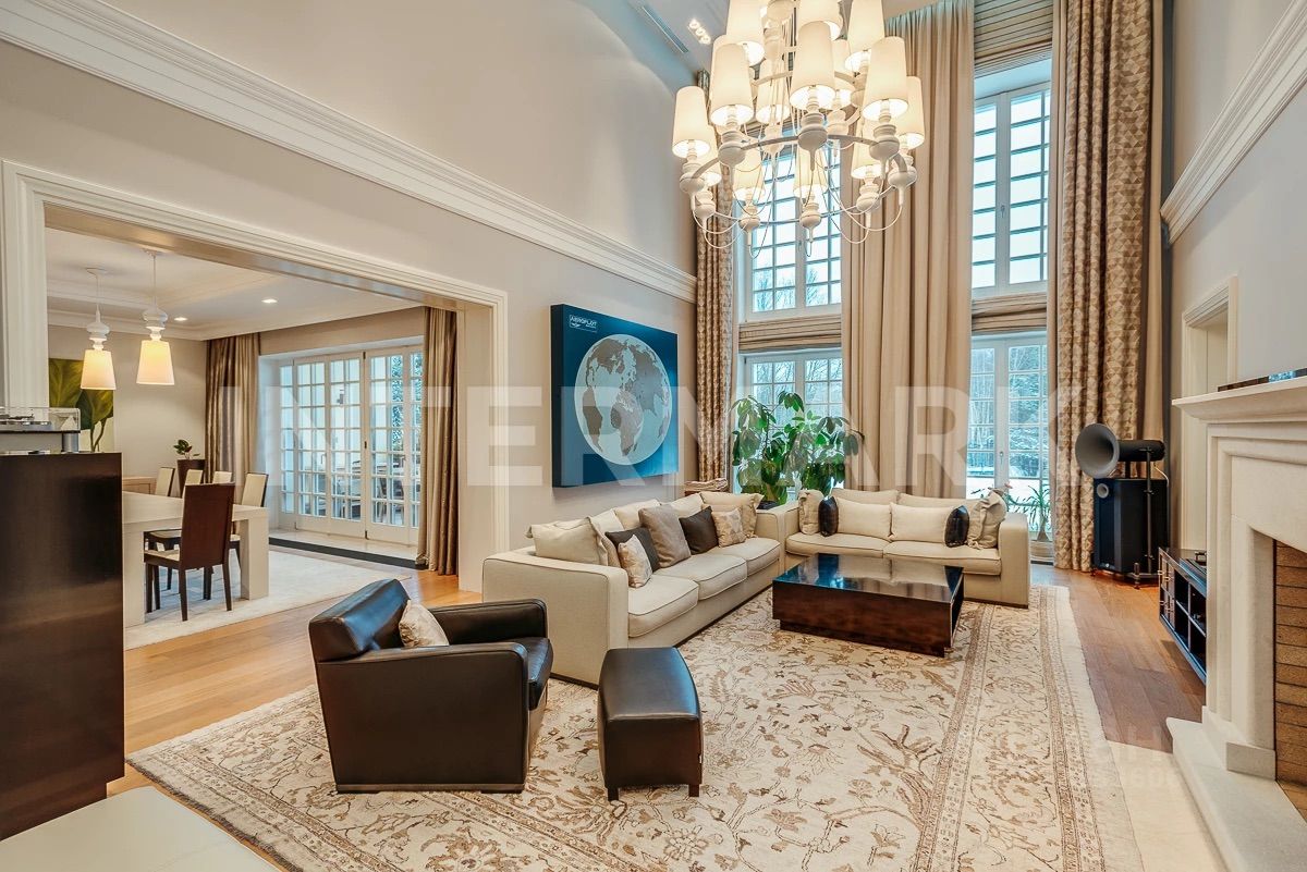 ID 31377. Эксклюзив Intermark Real Estate! К покупке представлен образцовый проект от ведущего архитектора Уборевича-Боровского, расположенный на живописном участке с ухоженной территорией. Дом площадью 480 кв. м выполнен с премиальной отделкой из высококлассных материалов и обставлен современной мебелью с оригинальными предметами интерьера. Функциональная планировка включает просторную гостиную со вторым светом и дровяным камином, кухню, 3 спальни с собственными ванными комнатами и оборудованный кабинет. Невероятно высокие потолки и огромные окна обеспечивают прекрасную инсоляцию, наполняя дом естественным светом. На территории расположены гараж на 2 машино-места, летний бассейн, чайный домик, помещения для персонала и зона для отдыха на свежем воздухе. Дом надежно охраняется по всему периметру. Объект обладает отличной транспортной доступностью — всего 10 минут на автомобиле от аэропорта Шереметьево по платной дороге Ленинградского шоссе.