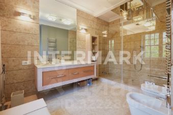 ID 31377. Эксклюзив Intermark Real Estate! К покупке предлагается роскошная семейная загородная резиденция Ивакино площадью 596 кв. м., расположенная на собственной территории в 2 гектара. Уникальный ландшафт включает каскад искусственных озер, красивые тенистые аллеи и современный Spa-комплекс. В доме выполнена премиальная отделка с использованием исключительно высококлассных дорогостоящих материалов. Интерьеры в современном стиле дополнены качественной комфортной мебелью и оригинальными предметами интерьера, специально подобранными для проекта. Продуманная эргономика пространства позволила создать функциональную планировку: просторная гостиная со вторым светом и дровяным камином, полностью оборудованная кухня, 3 спальни с собственными ванными комнатами, оборудованный кабинет и зона отдыха с домашним кинотеатром. На территории располагается гараж на 8 машино-мест и гостевой домик площадью 110 кв. м. На берегу пруда расположен уютный Spa-комплекс с зоной отдыха, сауной и купелью. Важное преимущество — отличная транспортная доступность: всего 10 минут на автомобиле от аэропорта Шереметьево по платной дороге Ленинградского шоссе.