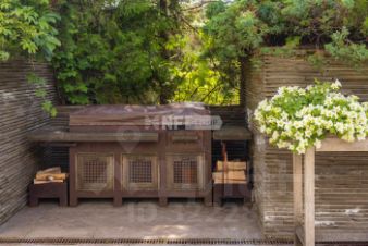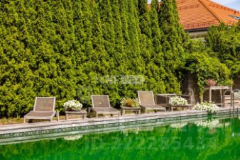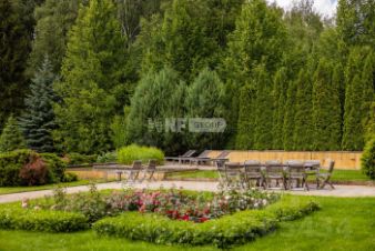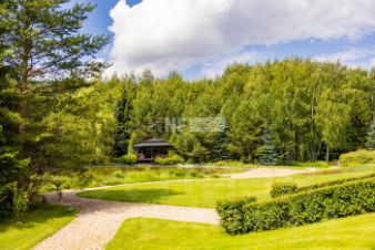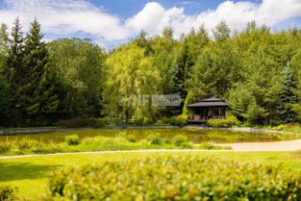 На земельном участке площадью 2,6 Га создан настоящий парковый ансамбль с искусственными озерами, тенистыми аллеями и живописным ландшафтом. Дополнительно обустроен летний бассейн и spa-комплекс. На территории также гараж на 8 машиномест, гостевой домик 110 кв.м., помещения для персонала.