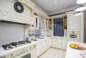 Основа кухонного пространства представлена итальянской мебелью из массива дерева от производителя Леонардо с интегрированной бытовой техникой высокого класса от Smeg и газовой плитой премиального бренда ILVE шириной 120 см. Санитарные узлы оборудованы сантехникой мировых брендов Grohe и Jacob Delafon, а также ваннами с функцией гидромассажа.