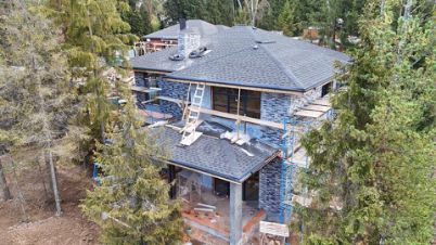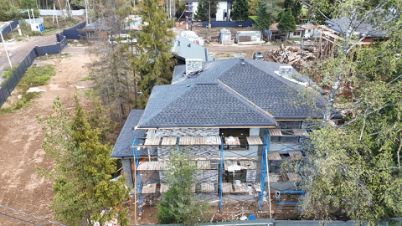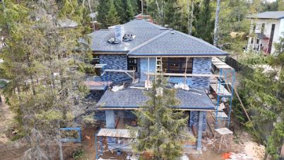 Кровля: Двухслойная гибкая черепица, подшивка планкеном, усиленная теплоизоляция.