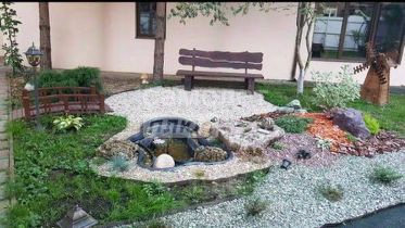 По участку выставлено много декоративных элементов