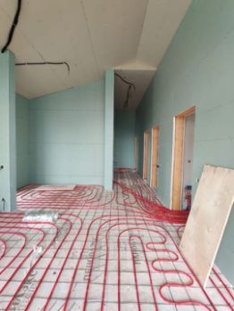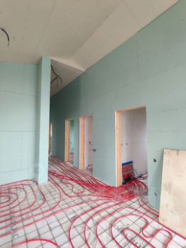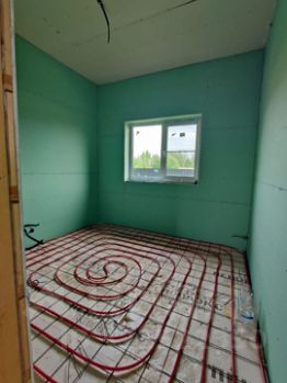 Произведен монтаж скрытой электрики по всему дому. монтаж скрытого гор./хол. водоснабжения с рециркуляцией и канализацией. Монтаж вентиляции канала с тремя грибками на кровле (с/у, кухня, котельная). Монтаж теплых полов по всему дому.